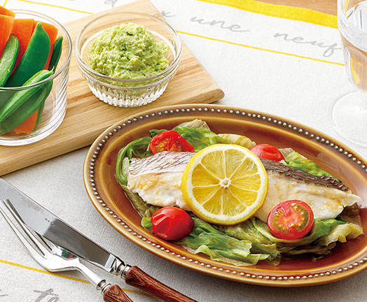 鯛とレタスのレモン蒸し