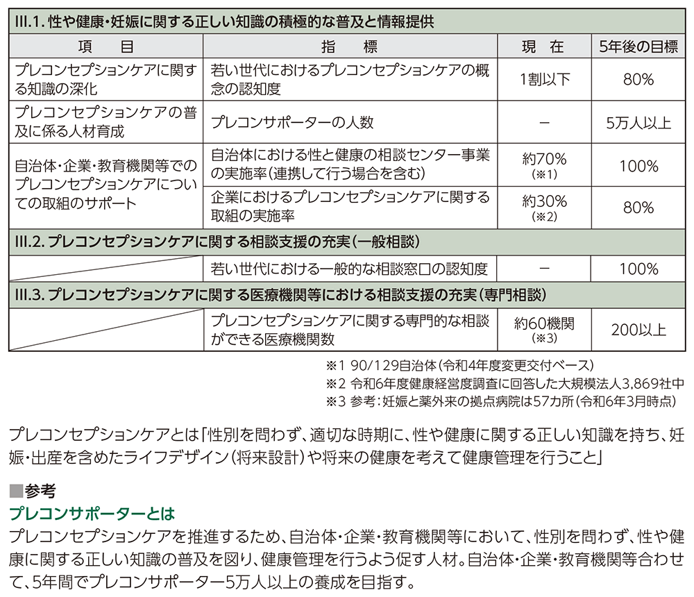 プレコンセプションケア推進5か年計画指標一覧